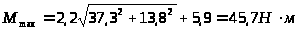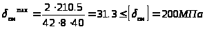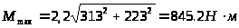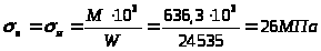 Определяем нормальные и касательные напряжения при действии максимальных нагрузок: