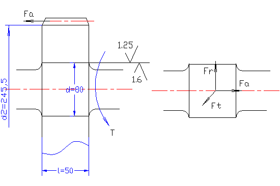 Ft=8622 Н; Fr=3379.5 Н; Fa= 3446.2Н; Т=1002.75 Н·м