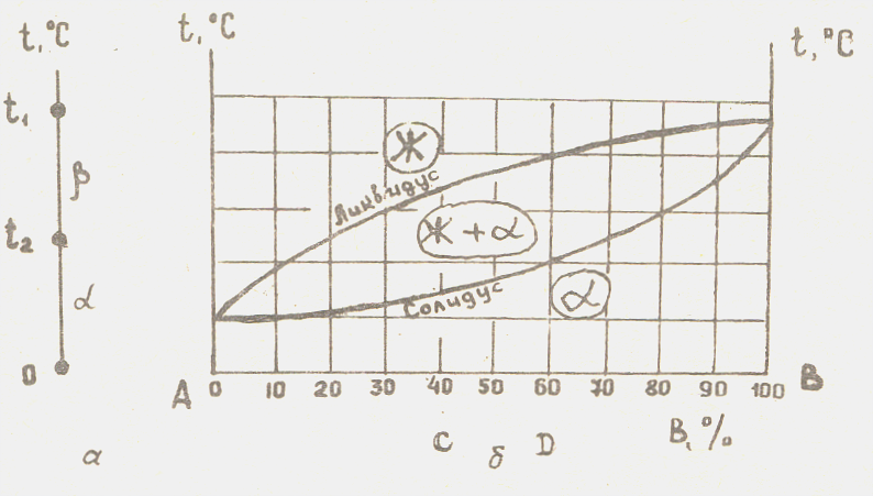 Если сплав однокомпонентный, то диаграмма состояния рис.2 а.