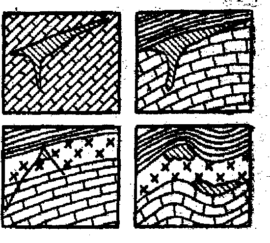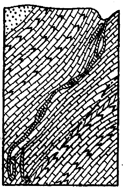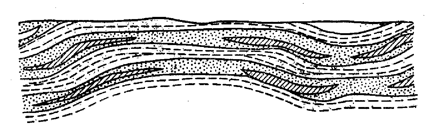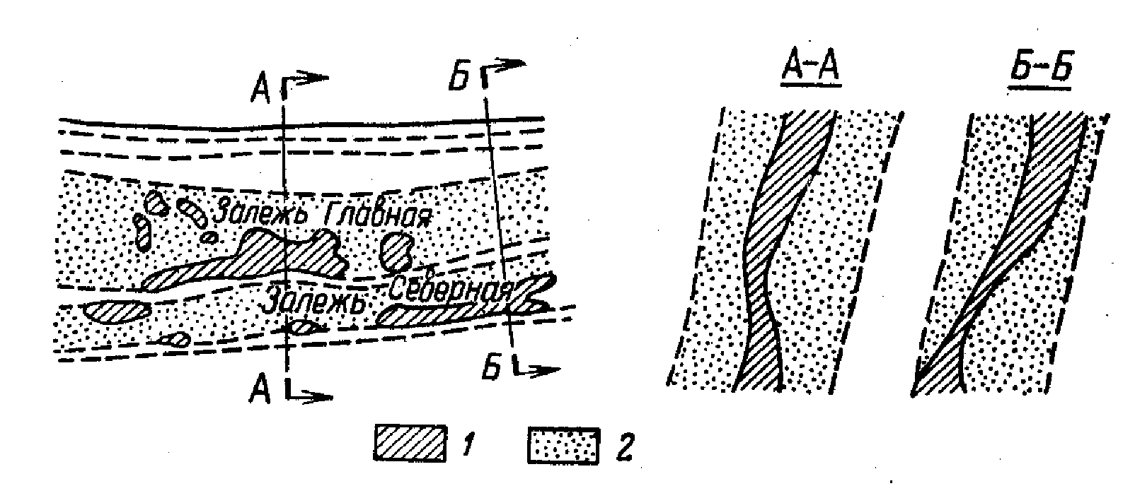 Пластоподібні – відрізняються від пластових менш витриманою формою та потужністю, мають різні кути падіння. Характерним представником родовищ цієї форми є більшість родовищ Кривбасу. |