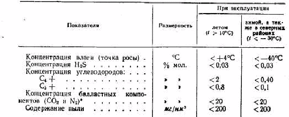 Показатели, которым должны удовлетворять газы, транспортируемые по магистральным газопроводам, представлены в табл.1.