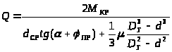Усилие, создаваемое при зажиме гайкой вдоль оси болта, определяем по формуле: