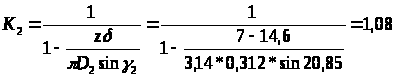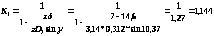 Поправочный коэффициент на влияние конечного числа лопаток по формуле.