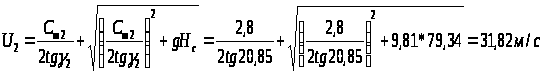 Меридиональная составляющая скорости потока при выходе из колеса без учета стеснения сечения по формуле.
