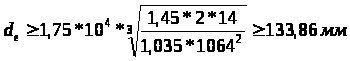 где d>m>>2> = 0,85*d>e>>2 >= 0,857*133,86 = 113,78 мм (39)