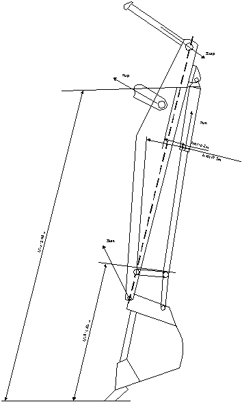 Подъем и опускание рукояти также осуществляется через 4 х звенный механизм, только от одного гидроцилиндра.
