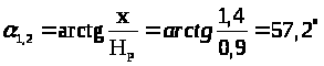 α = arctg d/Hp = arctg 3,76/2,1 = 60,81º;