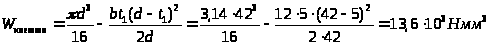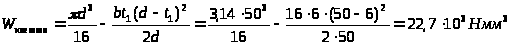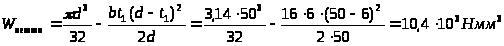 Момент сопротивления кручению (d= 50 мм, b= 16 мм, t>1>= 6 мм)