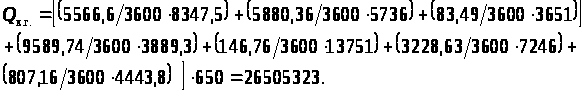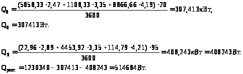 ∑Q = 627719,19 + 54743,9 = 682463,09 Вт.