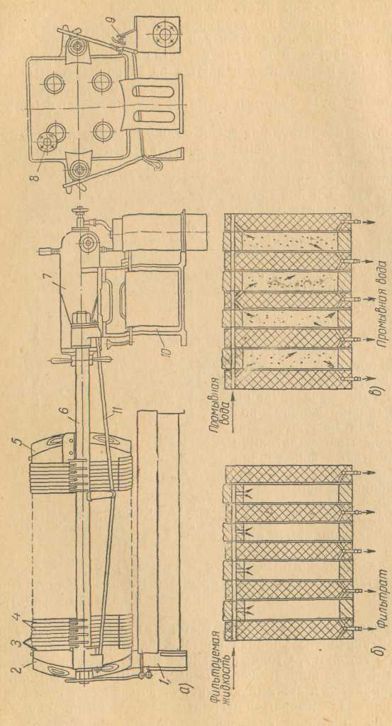 (рис. 1,6). Фильтрующая перегородка может быть изготовлена из пористых керамических плит или тканей, уложенных на решетке.