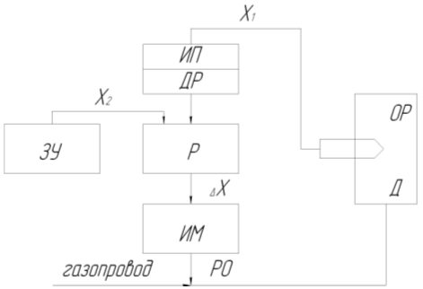 ИМ — исполнительный механизм; РО — регулирующий орган;