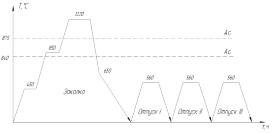 3. Для выполнения заданного технологического процесса выбрана для осуществления закалки с ступенчатым нагревом печь-ванна типа СВС 3,5.8.3,5/13, а для отпуска печь СШО 4.4/7.