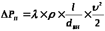 – внутренний диаметр трубопровода,