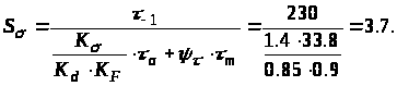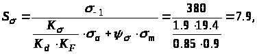 Определим запас прочности в месте перехода вала от одного сечения к другому.