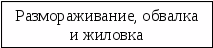 Если размораживание осуществляется в сырьевом цехе, то каждую партию сырья взвешивают до начала и после окончания размораживания и результаты этого процесса оформляются актом на размораживание мяса. В акте указывают наименование, категорию, упитанность сырья, подвергшегося размораживанию, выход размороженных мяса и субпродуктов, потери или излишки мяса после размораживания (в кг и в %). На обороте акта содержится рекомендация комиссии по порядку списания потерь. Акт составляет комиссия и утверждает руководитель предприятия.