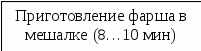 Приготовление фарша может быть закончено на куттере без применения мешалки. В этом случае за 0,5-1 мин до окончания куттерования вводят предварительно охлажденный шпик, нарезанный на шпигорезке на полосы длиной 20-30 см и шириной 5-6 см. Готовый фарш подают к шприцам.