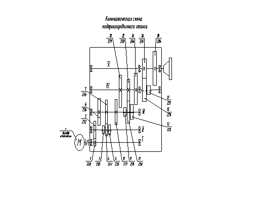 Привод коробки скоростей осуществляется от электродвигателя с n=1480 об/мин. Вращение от него через упругую муфту передается на первый вал. Через восемнадцатиступенчатую коробку скоростей движение передается на шпиндель.