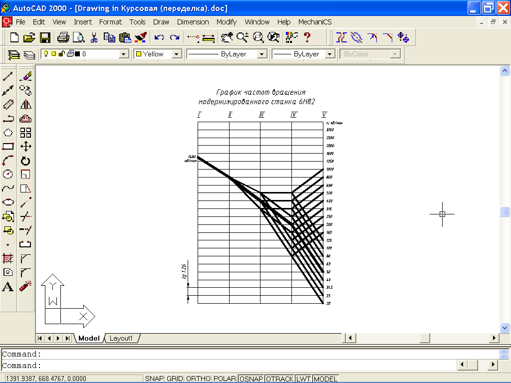 1.1 Построение графика частот вращения шпинделя