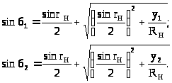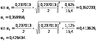 Углы обката т. a и b в радианах: