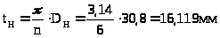 Шаг зуба в нормальном сечении: