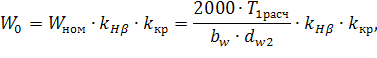 коэффициентов долговечности для шестерни