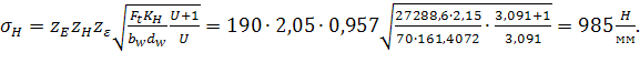 2.2.1 Проверка передачи на контактную выносливость