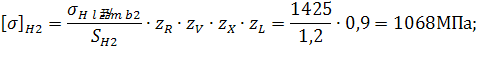 2.1.4 Определение допускаемых контактных напряжений
