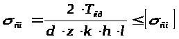 Расчет заключается в определении минимальной длины шлицов, необходимой для передачи крутящего момента. Расчет проводится на смятие по боковым поверхностям зубьев.