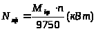 момент на валу в Н·м;