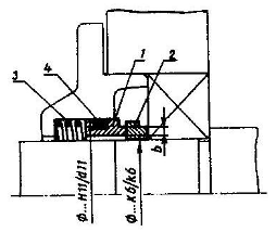 1,2 – уплотнительные кольца; 3 – пружина; 4 – статическое уплотнение; b – ширина поверхности трения кольца