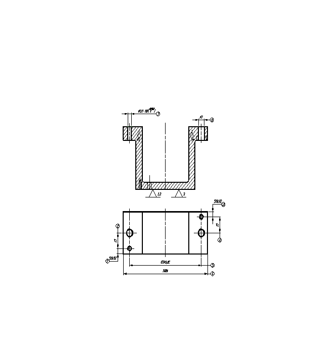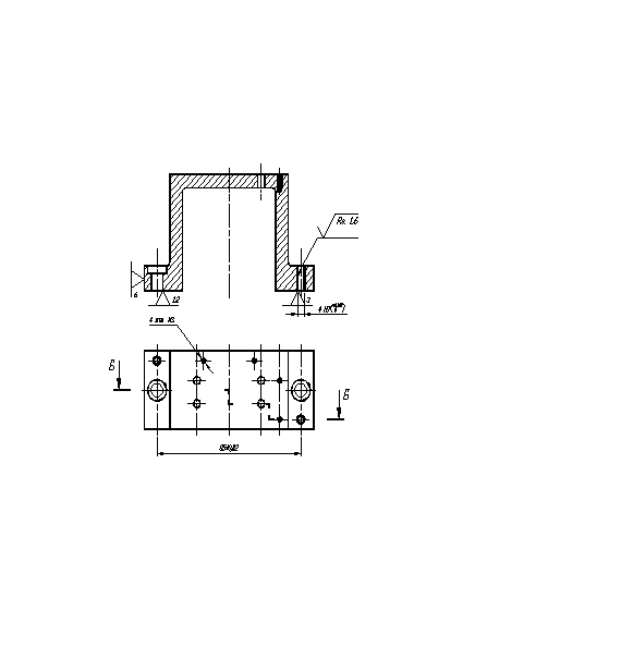 Деталь «Подставка» может быть описана как П-образный профиль с лапками в основании. Конструктивно она состоит из основания, стенок и перемычки. Толщина основания постоянна и равна 13 мм, толщина сечения стенок – 7,5 мм. перекладины — 7 мм. В основании выполнено два отверстия под крепежные болты М6 с внутренним шестигранником, а также два центрирующих отверстия под штифт 4Н7 В перекладине выполняется 4 отверстия 4+0,1, и 4 резьбовых отверстия М3. Внешний вид детали показан на чертеже.