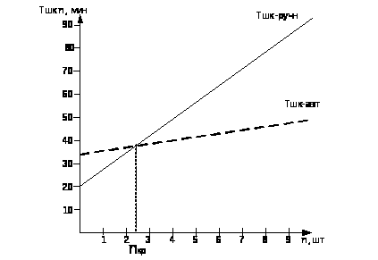 8.3 Определение оптимального варианта выполнения операции (по трудоемкости) в зависимости от числа изделий в партии