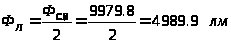 Остальные светильники считаем аналогично, данные сводим в таблицу