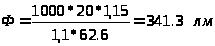 – коэффициент, учитывающий потери энергии в ПРА, принимается 1,2 при люминесцентных лампах и 1,1 при лампах ДРЛ и ДРИ;