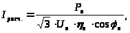 Находим расчетный ток электродвигателя (в нашем случае при полной загрузке он будет равен номинальному):