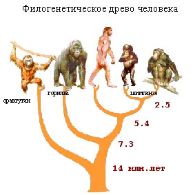 Мы будем говорить о происхождении человека. Человек отделился от шимпанзе 5,4 миллиона лет назад, эти цифры установлены на основе данных палеонтологии и молекулярной генетики на основе сходства ДНК обезьяны и человека. Шимпанзе есть два вида: обыкновенный и бонобо, он же карликовый шимпанзе (карликовый не потому что маленького роста, а потому что он живет среди пигмеев). Последний, по поведению, очень похож на человека.
