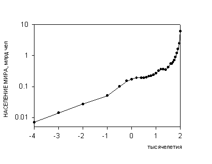 Интересно заметить, что уникальность человеческого вида заключается в том, что ни один вид животных кроме человека (и сопровождающих его крыс и тараканов) не смог расселиться от экватора и до северных широт. Причем это произошло в основном не из-за биологической гибкости, а из-за того, что человек смог использовать свою культуру и был способен к созданию социальных структур, таким образом, адаптируясь к изменениям внешней среды. Удавалось это человеку непросто. Если посмотреть на рисунок, то видно, что население Земли неуклонно росло. На данный момент население Земли составляет около 7млрд. человек.