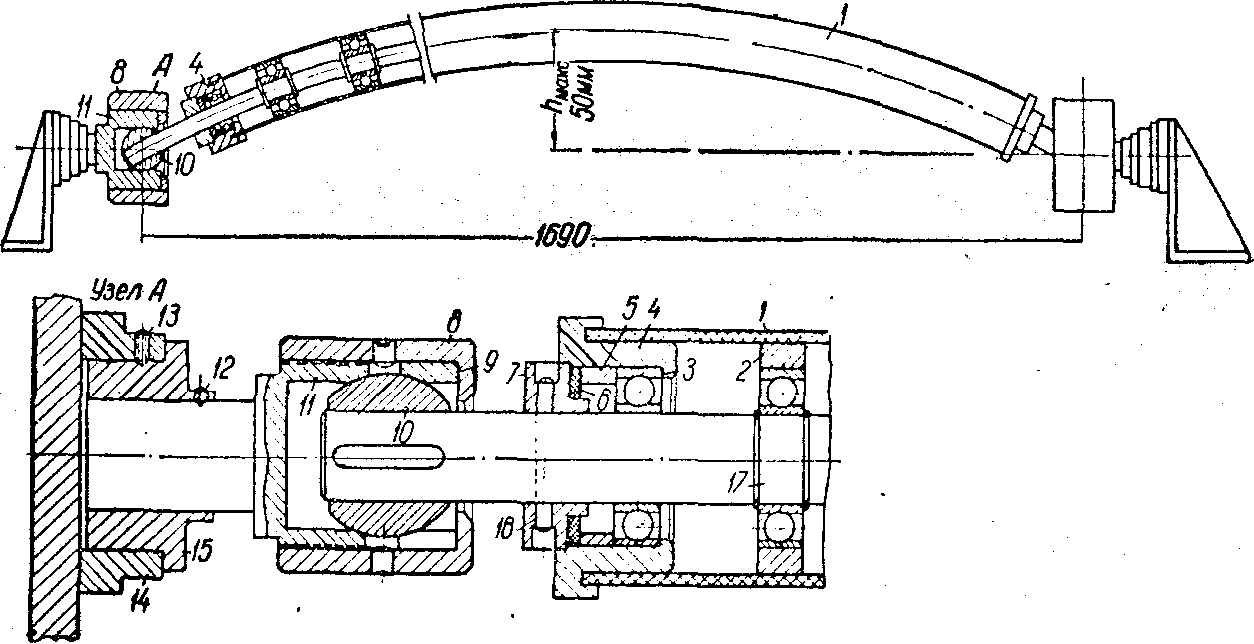 Сопротивление головки и, соответственно, давление расплава увеличением зазора, по-видимому, уменьшаются, при этом процесс выдавливания становится менее устойчивым. Это объясняется тем, что разница в скоростях выдавливания расплава на разных участках кольцевого зазора головки растет вследствие того, что при падении давления возрастает разница в температуре и вязкости в разных точках расплава. Зазор обычно делают равным 0,7—0,8 мм. При меньших его величинах сопротивление головки резко увеличивается. Ниже дано описание одной из конструкций агрегата II типа. (см. табл. 1).