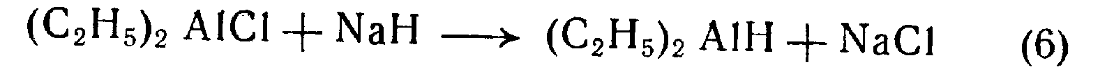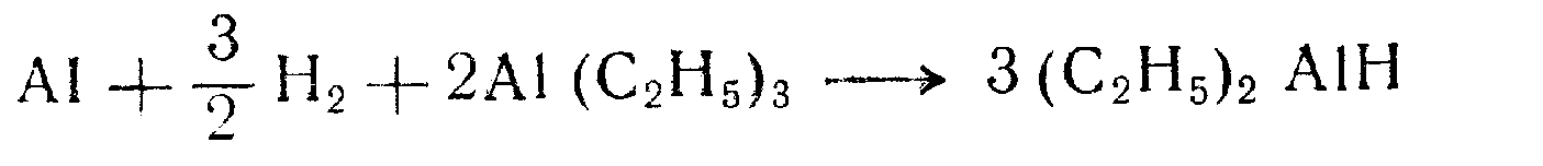 В результате реакции, которую можно осуществлять в углеводородной среде (например, в гексане или циклогексане), получается раствор диэтилалюминий гидрида. Этот раствор затем непосредственно переводится в триэтилалюминий действием этилена при 70—80° С и повышенном давлении: