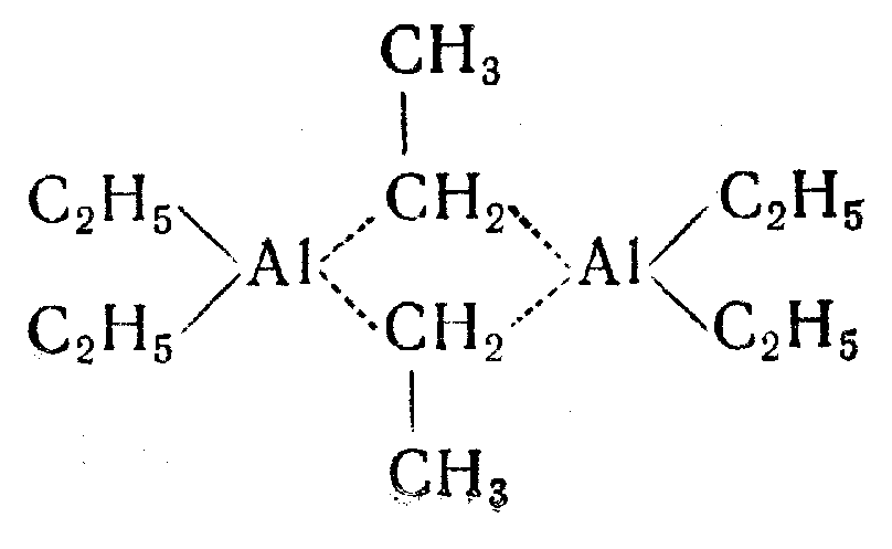 Алкилбериллий, содержащий металл с наименьшим ионным радиусом, в присутствии треххлористого титана дает самый высокий выход изотактического полипропилена при больших скоростях реакции полимеризации. На степень изотактичности и скорость реакции оказывают влияние также стерические и химические свойства заместителей металлорганического соединения. При полимеризации пропилена в присутствии триметилалюминия образуется полимер с большим содержанием атактической фракции, чем при применении триэтилалюминия. Стереоспецифичностъ, однако, падает и при высших алкилах. Если один алкил алюминия заменить на галоген, то скорость реакции снижается в ряду F>Cl>Br>I; в том же порядке увеличивается молекулярный вес. Натта в результате проведенных опытов по полимеризации пропилена с треххлористым титаном в среде толуола пришел к заключению, что стереорегулярность падает в ряду