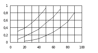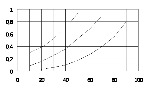 Рис. 8.2 Зависимость давления насыщенного пара (Р10-5 Па.) жидкости от температуры (ацетон, этиловый спирт, вода – соответственно).