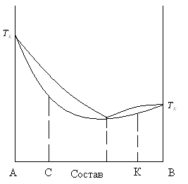 Рис. 8.4. Диаграмма состав-температура кипения двойных смесей.