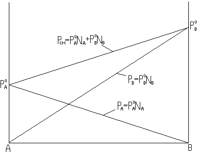 Рис. 8.3 Диаграмма состав раствора – давление насыщенного пара