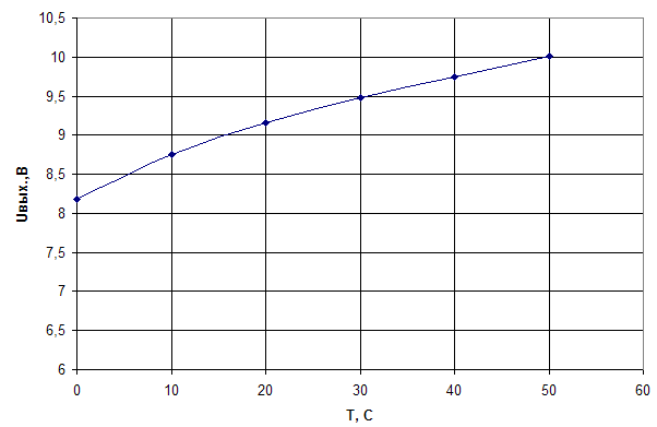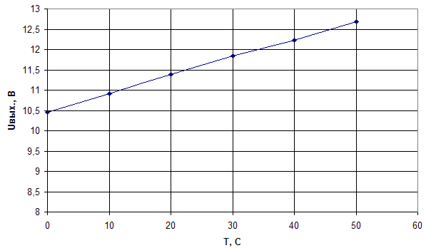 После этого необходимо получить зависимость выходного напряжения при изменении температуры окружающей среды в диапазоне (0… +50)˚С.