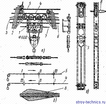 Рис. 5. Грузовая тележка и кулачковая поддержка кабельного крана: