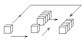 Особливість цієї схеми заключається в тому, що вироби з конвеєра не знімаються.