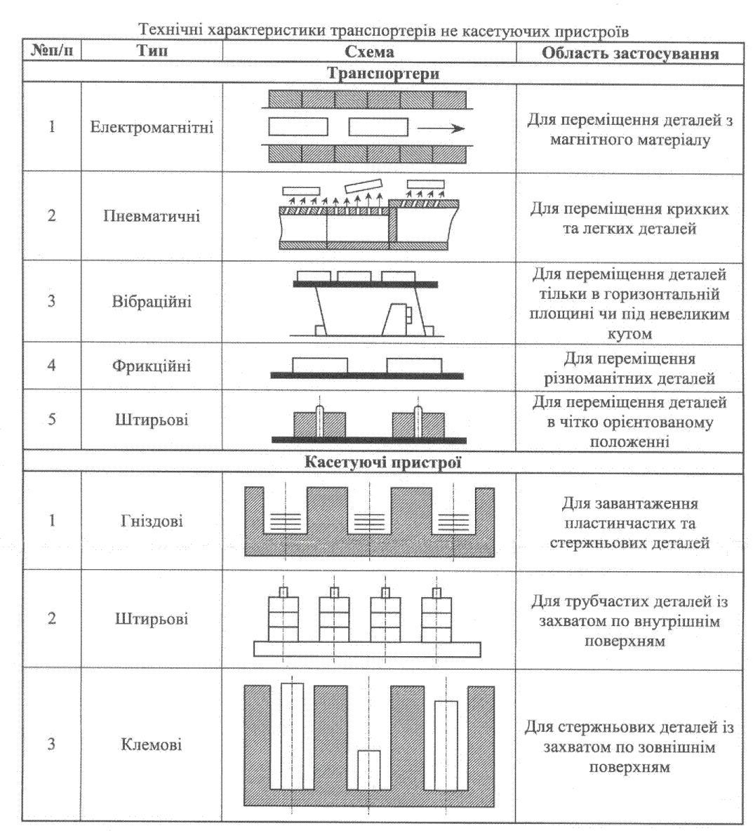 створення спеціального або спеціалізованого обладнання для орієнтації і транспортування виробів;