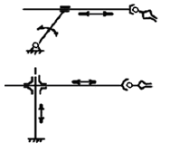 На рис.3.3 показані схеми маніпуляторів для одержання рухів в базовій площині