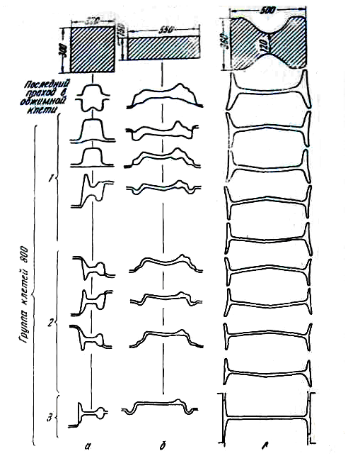 Схемы прокатки некоторых профилей на стане 800 НТМК