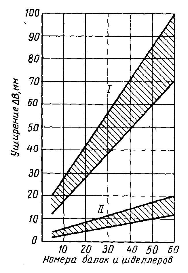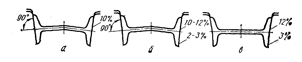 По толщине полки плюсовые отклонения не ограничиваются, минусовые допускаются до 6% средней толщины полки. Толщину полок контролируют по калибрам на валках при их расточке.